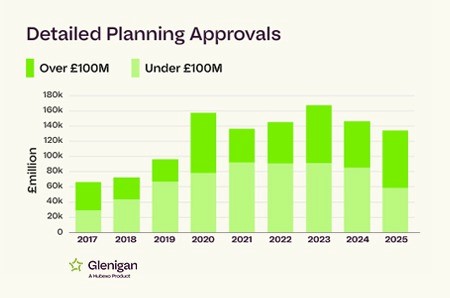2025 saw an 8% decline in detailed planning approvals year-on-year; and 11% decline in main contract awards year-on-year; and a 20% decline in project starts against the preceding year-on-year.