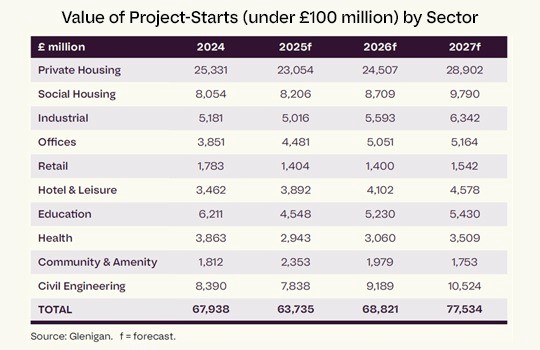 Glenigan is predicting an absolute boom in construction over the next two years, particularly residential, following a bit of a duff 2025.