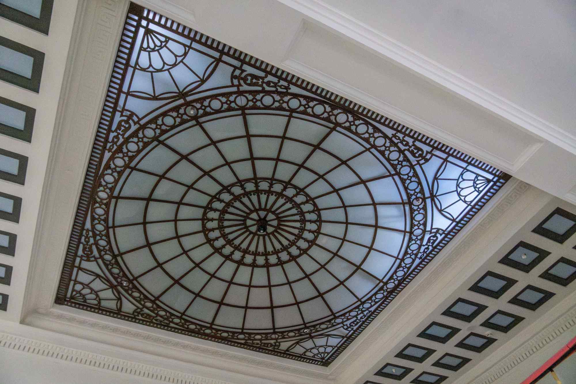 “Every piece of glass had to be templated in plywood and sent away to be remade, before being reglazed in a traditional manner and eventually repainted. It was a very tight space for staff to work in, making it logistically difficult. As part of the pricing, ASWS worked closely with McLaren to establish a robust glazing replacement methodology, which included erecting a seven-metre-high scaffold off the slab below, sequenced so that all the different levels of the dome could be accessed as necessary.”
